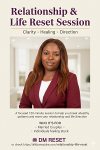 A focused 120-minute private session ( once a week ) for a month , designed to help you identify unhealthy patterns, gain emotional clarity, and reset your relationship and life direction , honestly, practically, and intentionally.